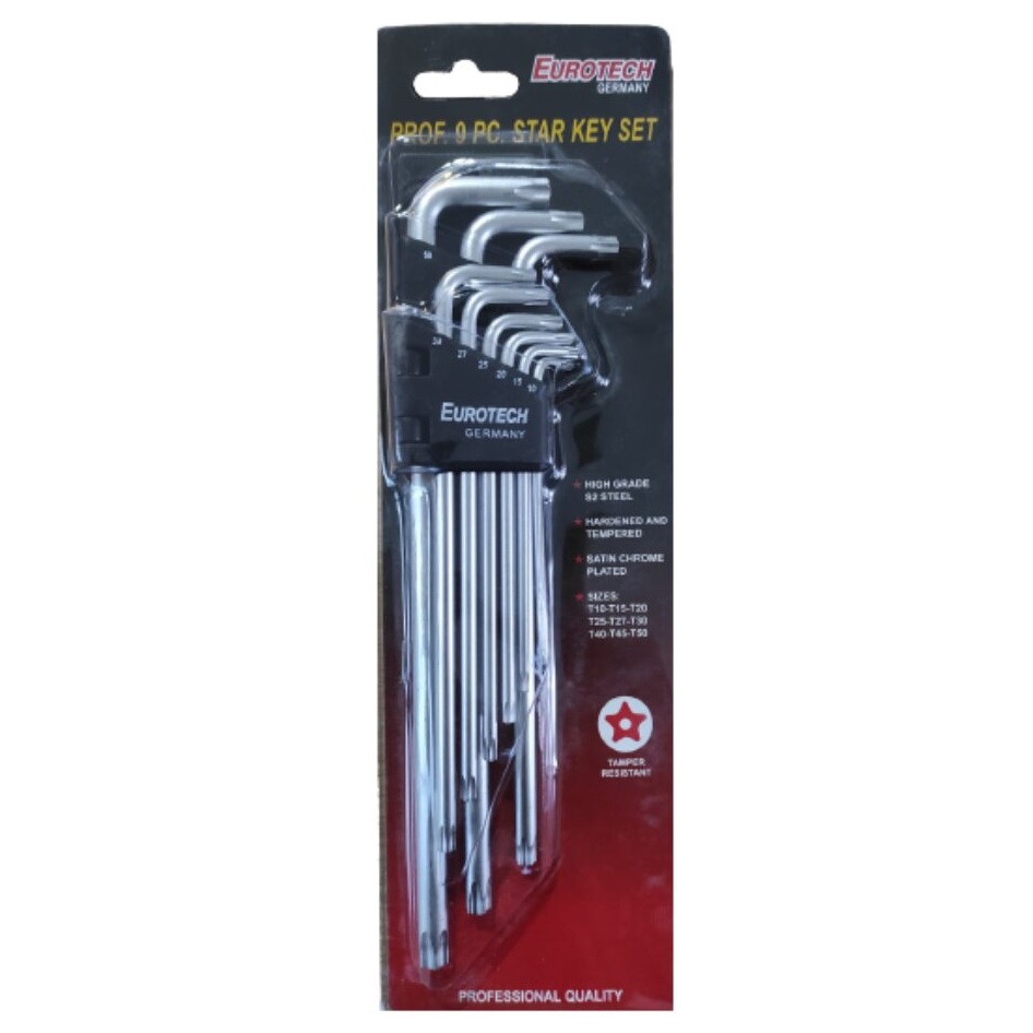 LLAVE Torx x9 pz LARGA (6 alas) Eurotech