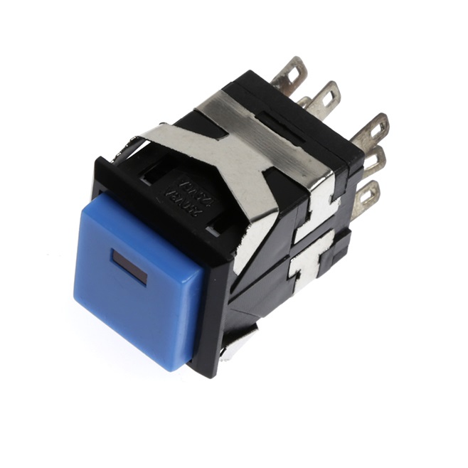 Tecla CUADRADA Pulsador On-Off con LED 250v 3amp 8T 17x17mm Azul