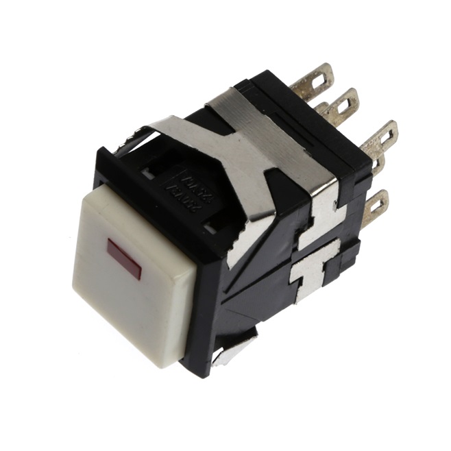 Tecla CUADRADA Pulsador On-Off con LED 250v 3amp 8T 17x17mm Blanca