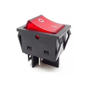 Tecla DOBLE Interruptor On-Off c/Luz ROJA 250v 15amp 4T 2polos 30.8×25.5mm