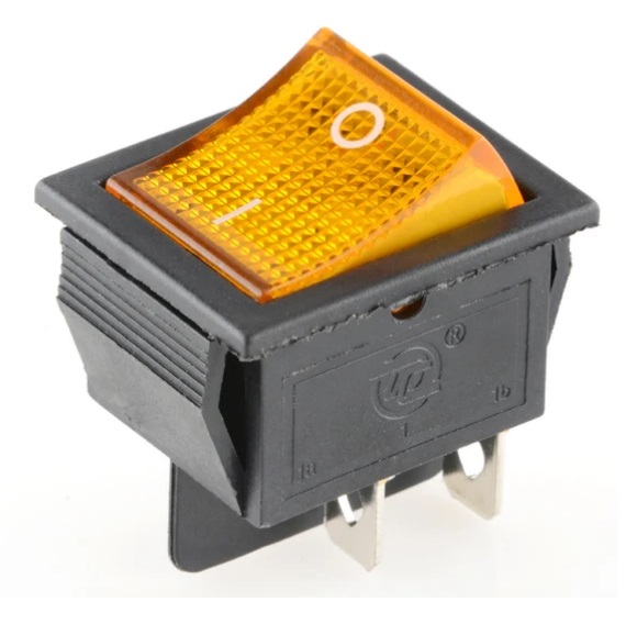 Tecla DOBLE Interruptor On-Off c/Luz AMBAR 250v 15amp 4T 2polos 30.8×25.5mm