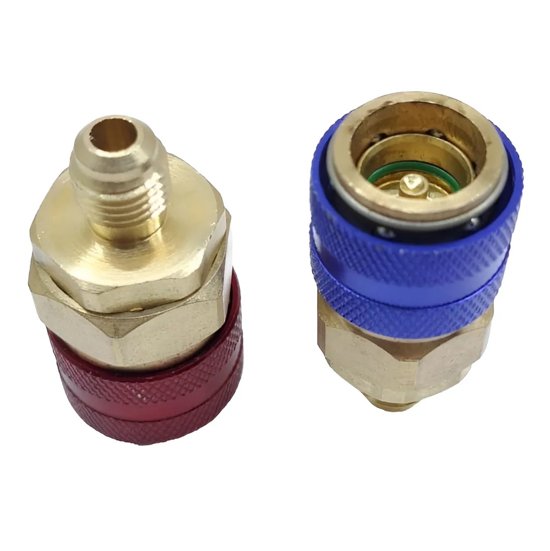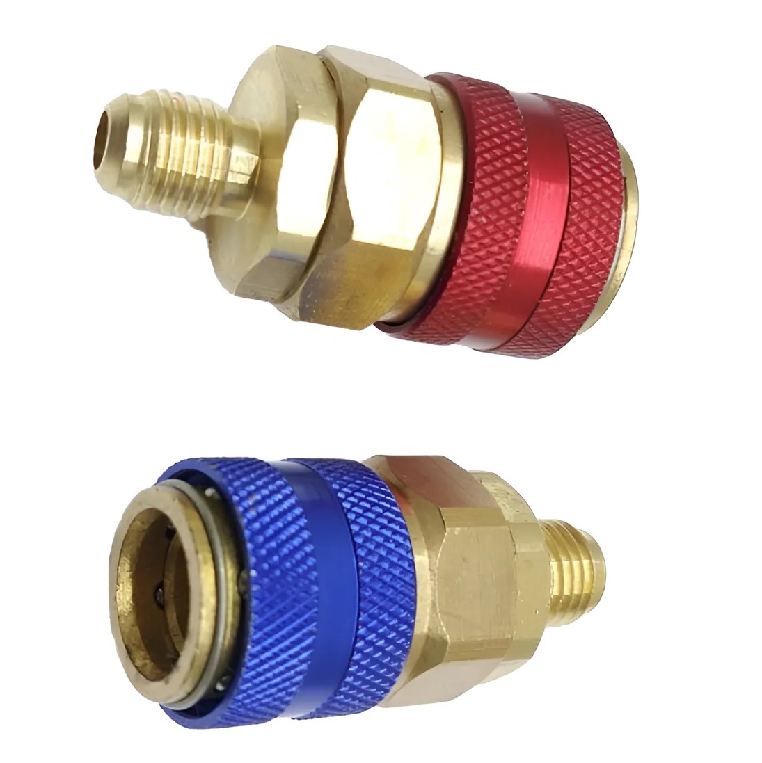 – Acoples para adaptar salida del aire acondicionado del auto a Rosca 1/4″ para conectarle las mangueras y poder realizar cargar y servicio de refrigeración al auto.