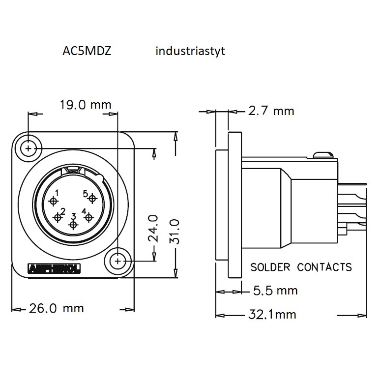 Base CANON AMPHENOL 5 Contactos Macho Ptype