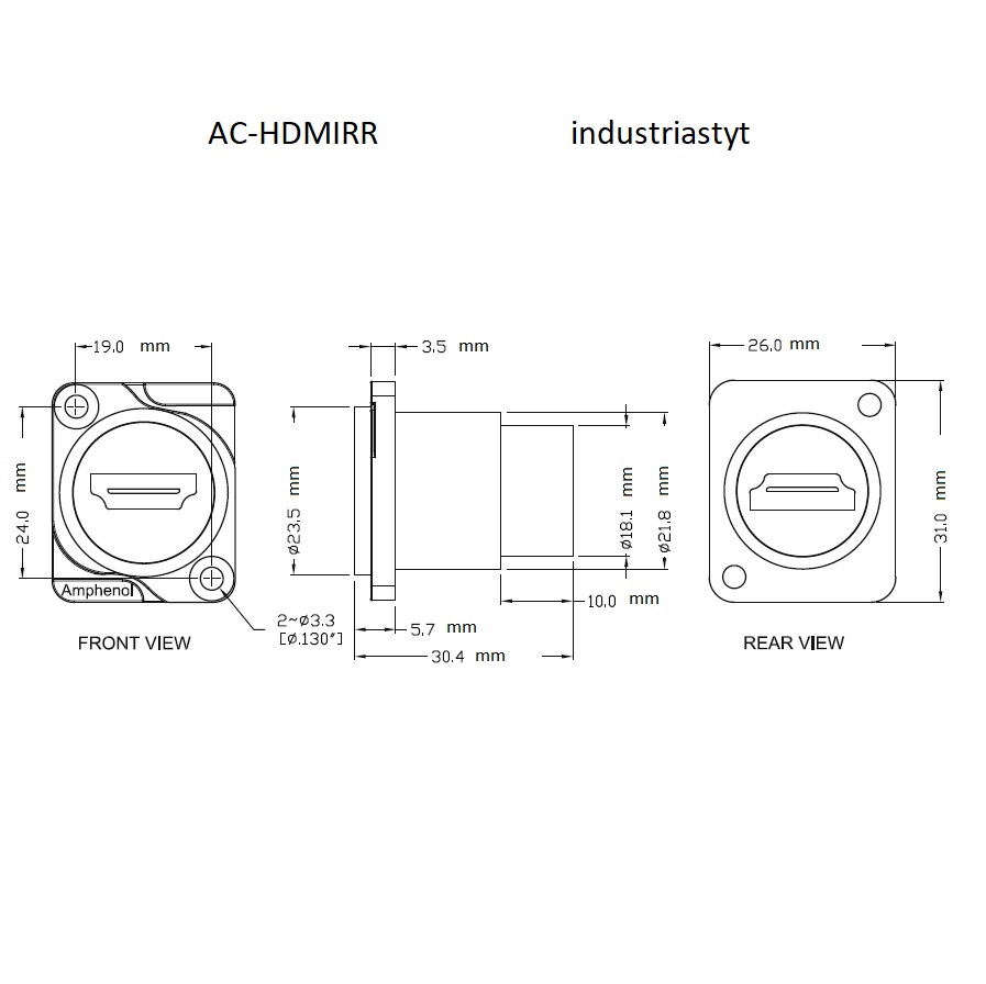 Base HDMI AMPHENOL Hembra Dtype a Chasis
