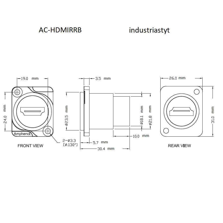 Base HDMI AMPHENOL Hembra Negro Dtype a Chasis