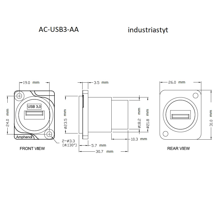 Base USB AMPHENOL Hembra Dtype a Chasis