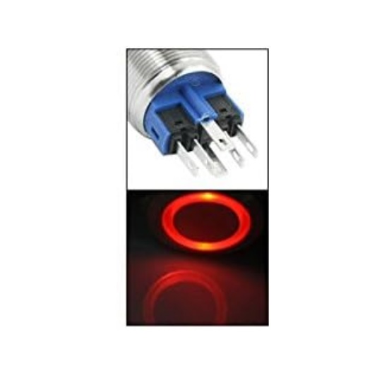 Boton INDUSTRIAL 25mm Pulsador (On)-Off con LED Rojo NA 250v 2amp 2T ACERO cantidad