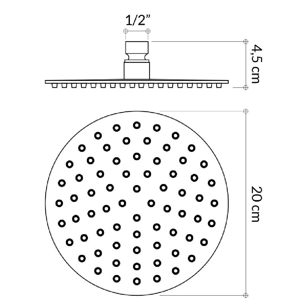 CABEZAL DE DUCHA REDONDO TIPO LLUVIA (20 cm.) 70 boquillas