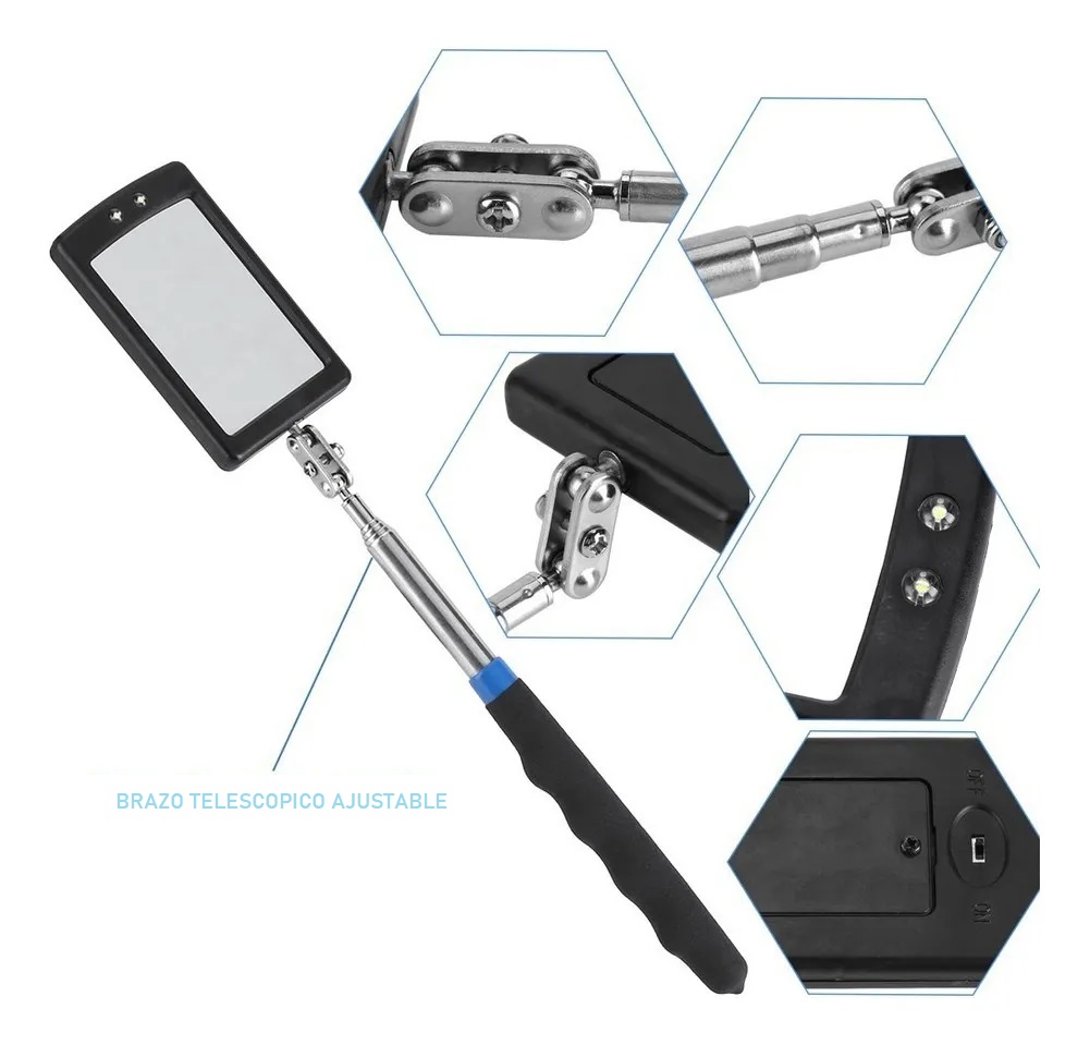 Este artículo está hecho de acero aleado y plástico ABS sólido, duradero y robusto, seguro y ecológico de usar. Cuenta con 2 luces LED extra brillantes que pueden facilitar la inspección de áreas difíciles de ver y de difícil acceso en vehículos, maquinaria, etc., y permiten observar fácilmente las grietas oscuras de su espacio de trabajo. También cuenta con una rótula giratoria de 360 grados for capacidades de visualización adicionales, lo que permite que el espejo de inspección gire libremente y, al mismo tiempo, mantenga la posición deseada.