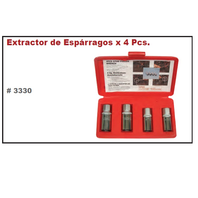 • Juego de 4 tubos para extraer o apretar esparragos de 6 mm, 8 mm, 10 mm y 12 mm.