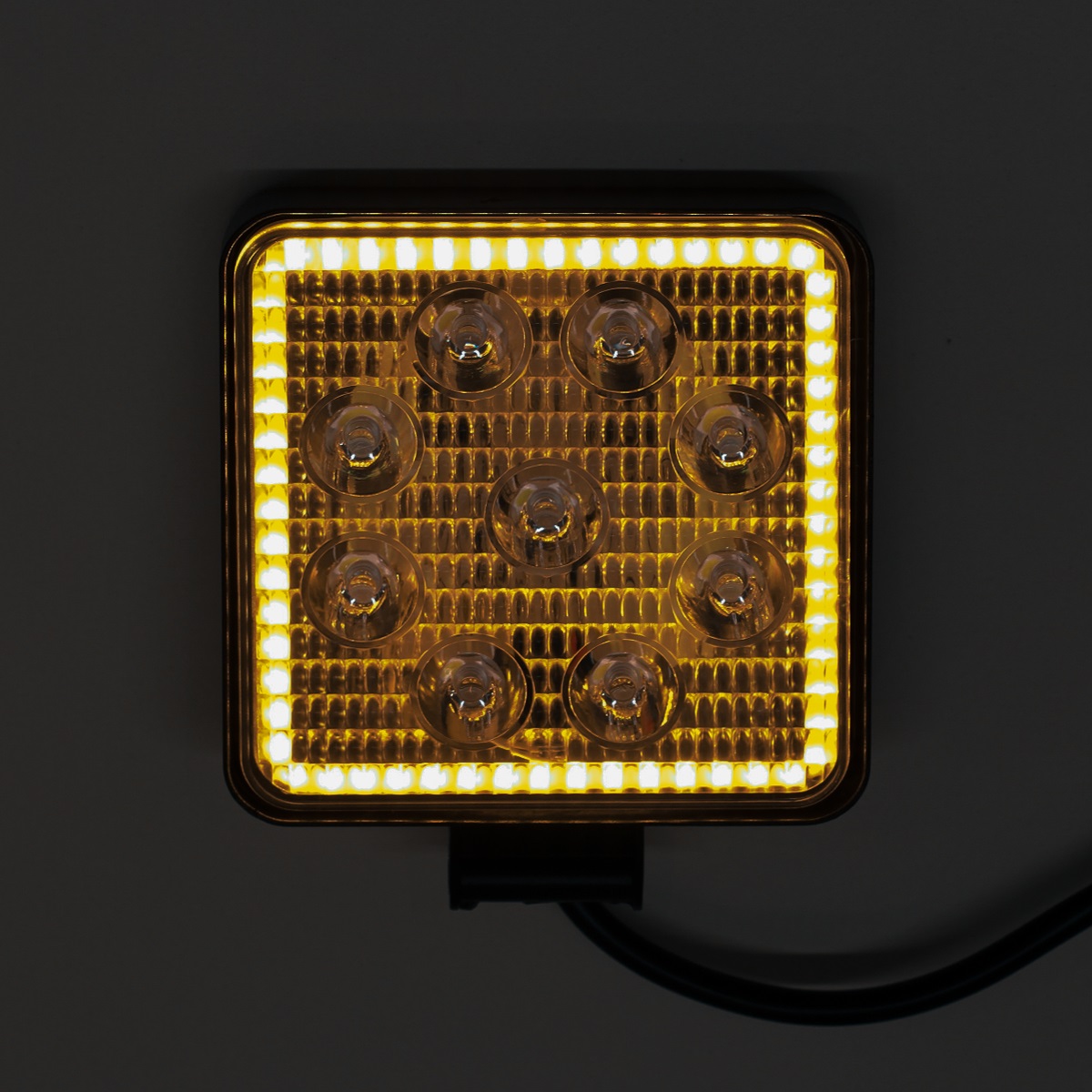 Faro LED 12v/24v CUADRADO 27W 9L ARO Ambar 10.8x2x11