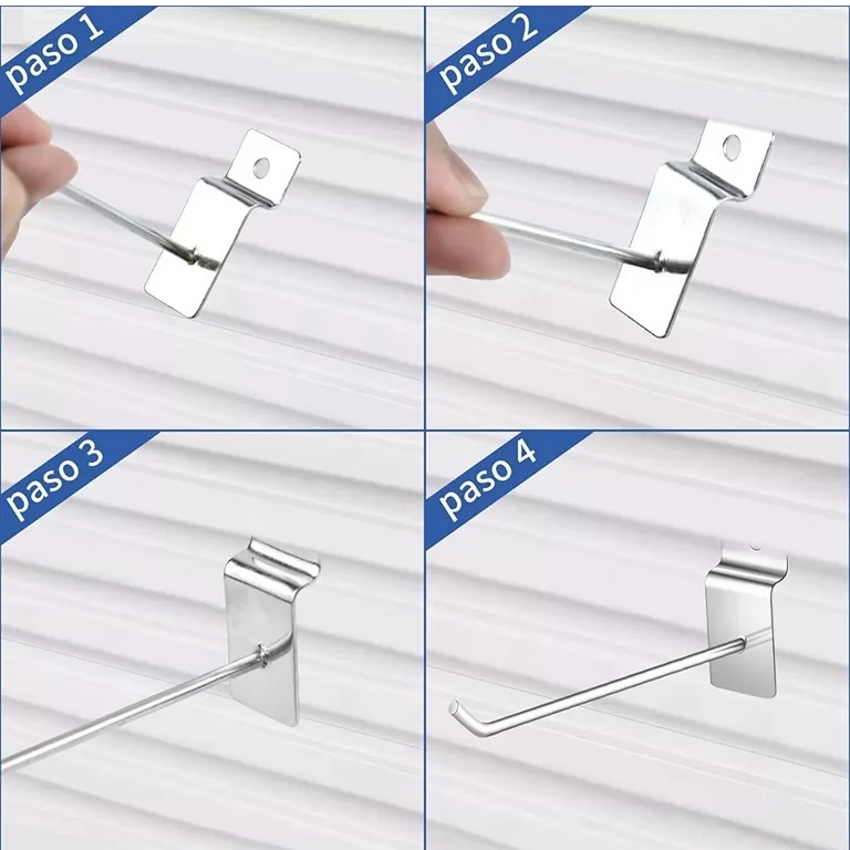 Estos ganchos para paneles de exposición están bien construidos con una inclinación de 30 grados hacia arriba en el extremo para permitir que los artículos se deslicen automáticamente y se ajusten de forma ordenada y evitar que se caigan. Tienen una punta plana y sin bordes afilados, por lo que no tienes que preocuparte de hacerte daño en los dedos al utilizarlas.