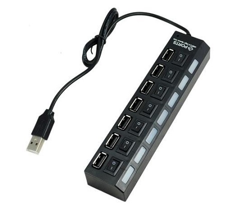Zapatilla HUB USB 7 Puertos con tecla cantidad