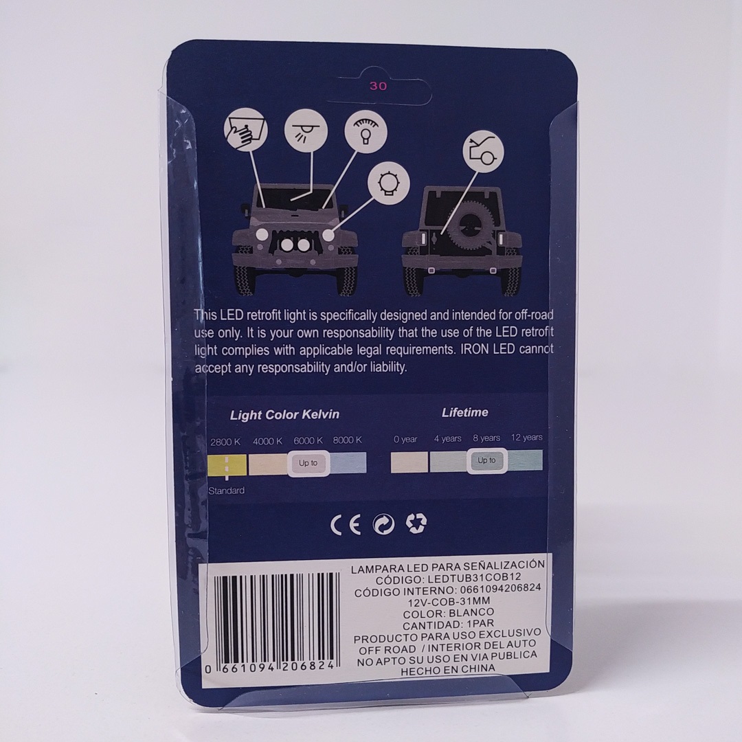 Lamparax2 LED 12V COB TUBULAR FESTOON 31mm Blanco cantidad