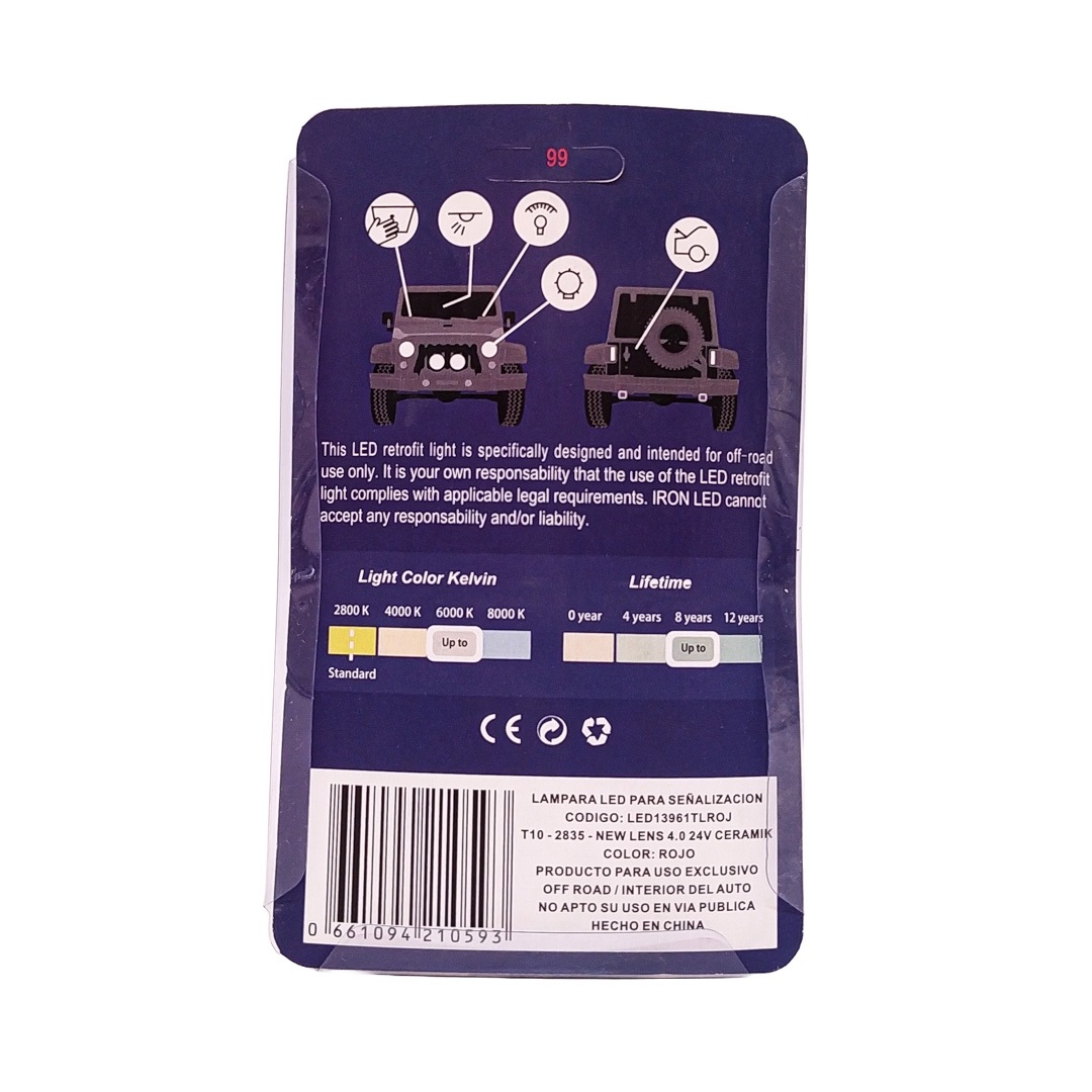 Lamparax2 LED 24V CERAMIK 2821 T10 W5W LED 2835 ROJO