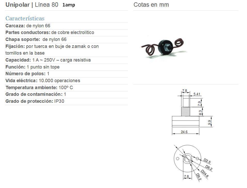 LLave ROTATIVA 1punto 250v 1amp sin Tope Fijacion con Tuerca