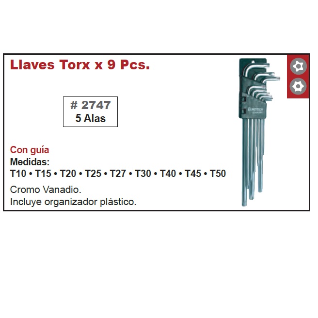 Medidas : T10 – T15 – T20 – T25 – T27 – T30 – T 40 – T45 – T 50