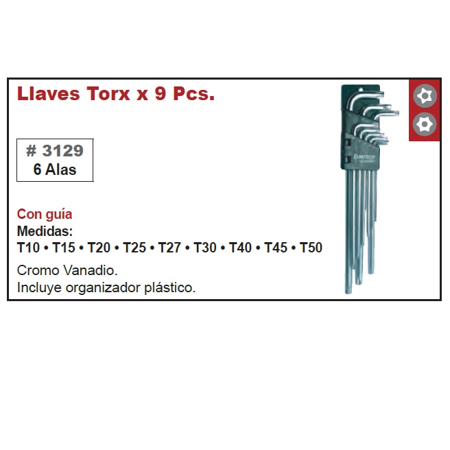 JUEGO DE LLAVE TORX x 9 PIEZAS T10-T15-T20-T25-T27-T30-T40-T45-T50.
