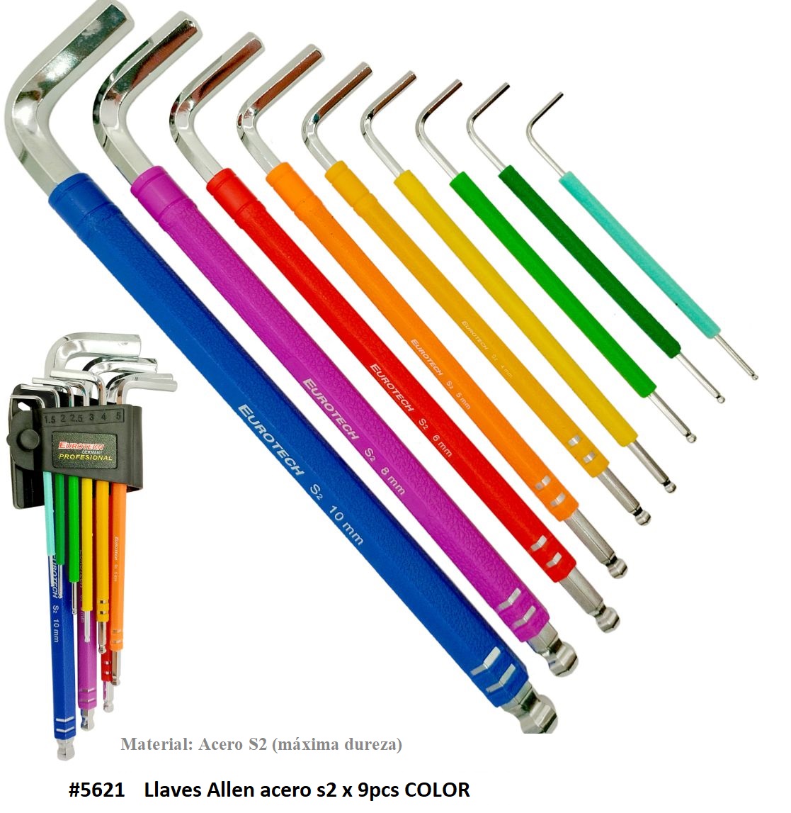 LLaves ALLEN acero S2 maxima dureza T10 a T50 x9pz cantidad
