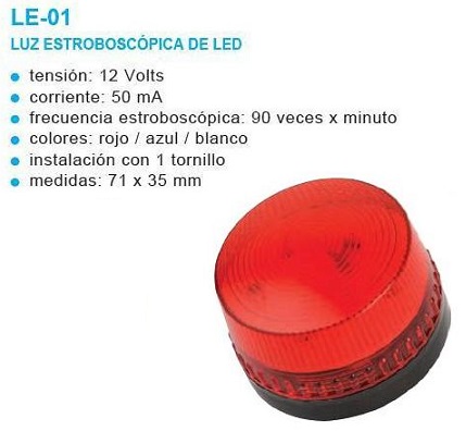 LUZ ESTROBOSCOPICA DE LED 12v 50MA (ROJO-AZUL-BLANCO)