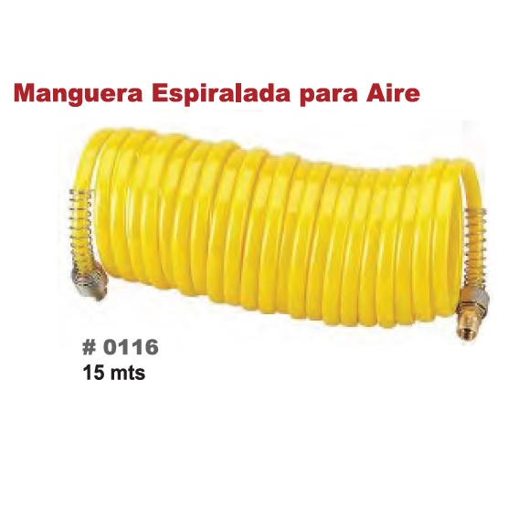 MANGUERA ESPIRAL WEMBLEY DE 15 MTS ROSCA 1/4 PRESION MAXIMA DE TRABAJO 200 PSI