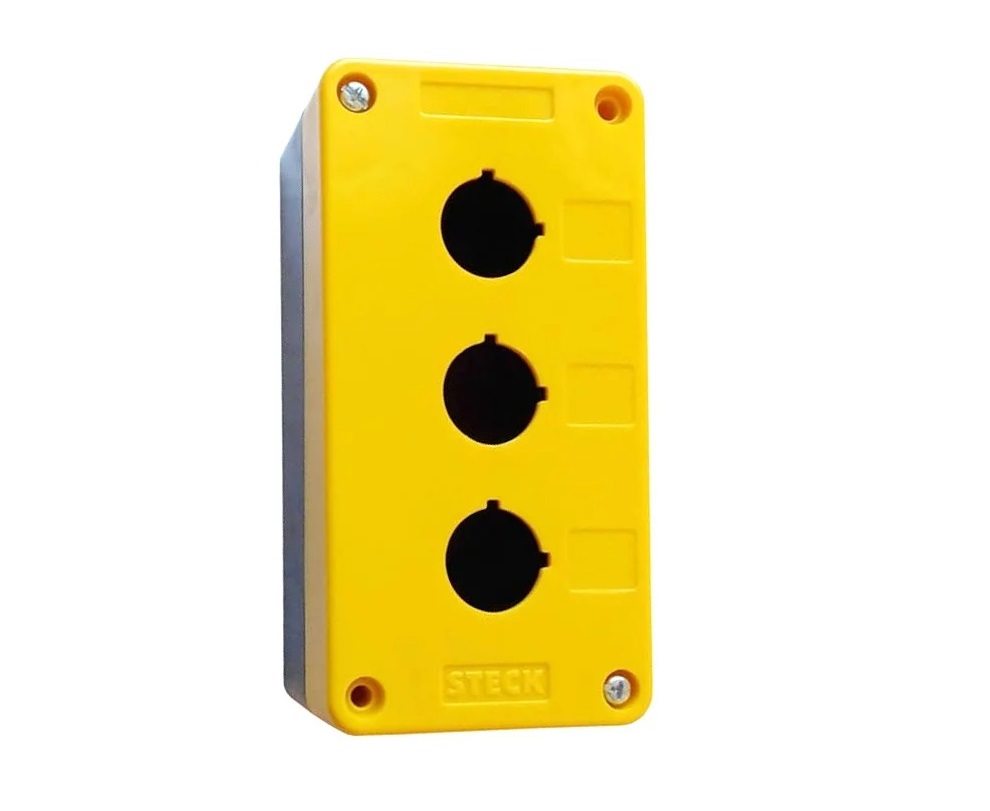 La línea de Botoneras fue diseñada para la fijación en paredes y gabinetes. Ideales para ascensores (salas de máquinas, usinas,etc), sierras eléctricas, máquinas herramientas, etc, y en cualquier aplicación donde se necesite interacción entre hombres y máquinas o cualquier tipo de equipamiento para elevación y transporte. Para colocar 3 botoneras color amarrillo tapa, cuerpo negro, diametro del los agujeros 22,5mm, grado de proteccion liquidos y cuerpos extraños IP65, proteccion mecanica IK10, temperatura de funcionamiento de -25°C hasta 70°C. Dimensiones 145mm anchox75mm altox57mm profundidad.
