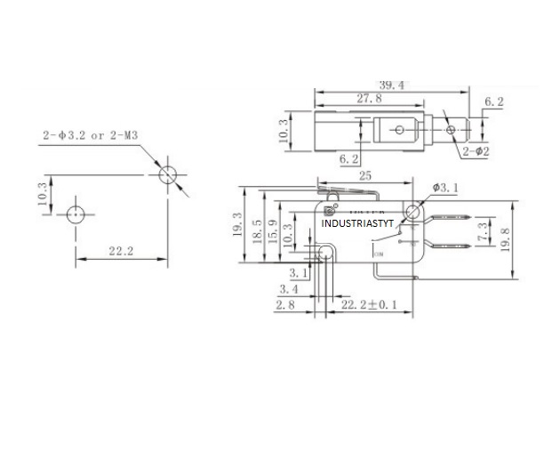 Microswitch MSW-05 Palanca 16.4mm 16A 3T 28x16x10mm