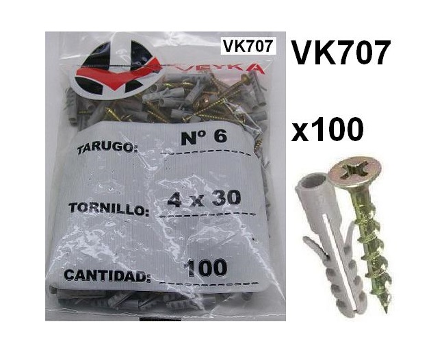 PACK de100U TARUGO N 6 con TORNILLOS cantidad