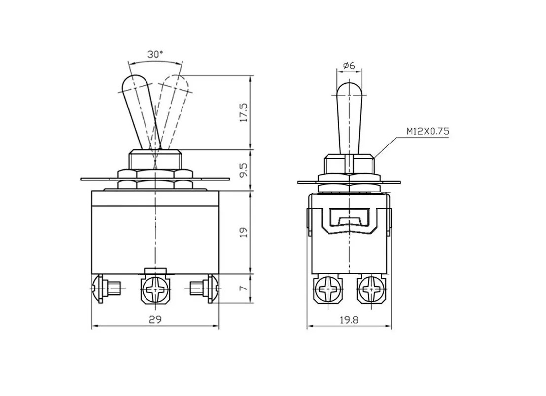 PALANCA Interruptor On-Off 250v 10amp 4T 2polos