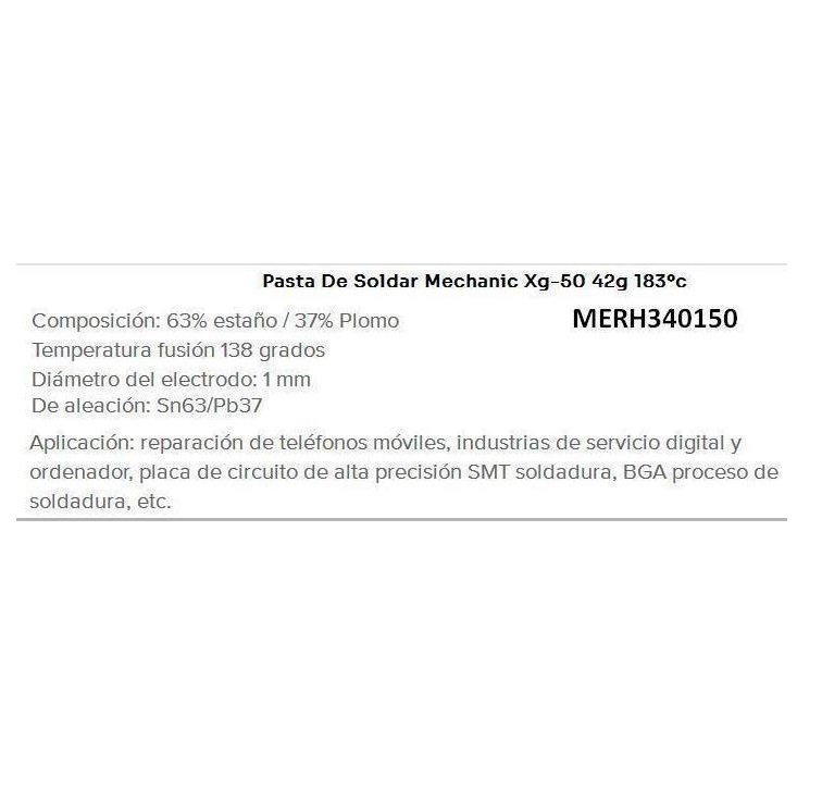 Pasta de soldar MECHANIC Xg-50 42g 183?c cantidad