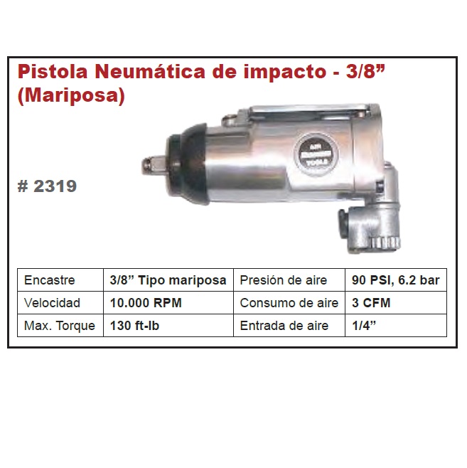 Pistola NEUMATICA de Impacto 3/8" Mariposa Eurotech cantidad