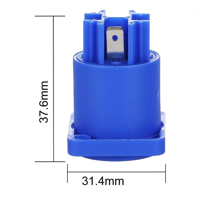 • Conector PowerCON, con bloqueo, terminales de tornillo color azul