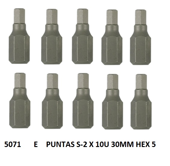 Puntas cortas Allen 5 30mm x10u cantidad