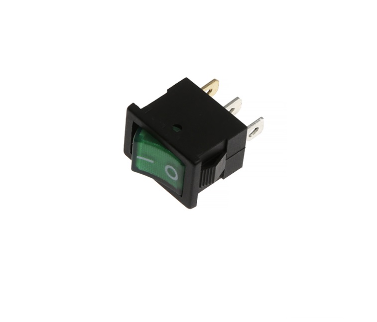 Tecla c/LUZ VERDE On-Off 12volt 15A 3T 21x15mm