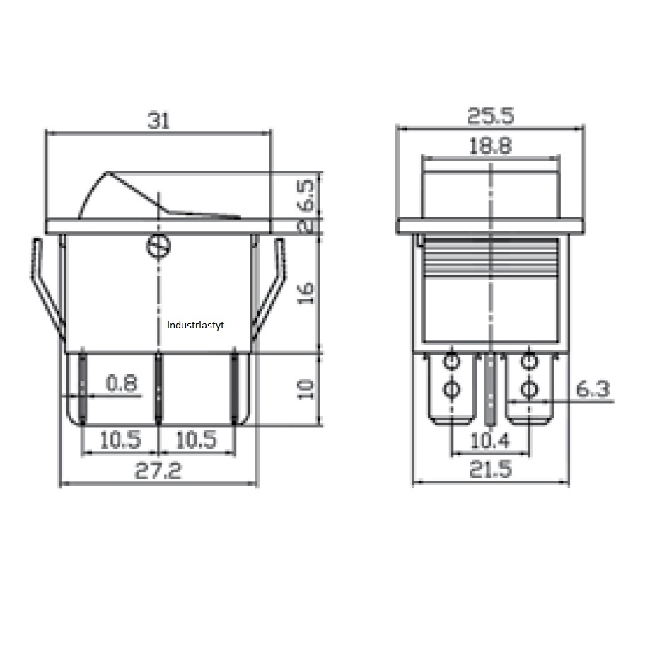 Tecla DOBLE Inversora On-On c/Luz AZUL 250v 15amp 6T 2polos 30.8x25.5mm cantidad