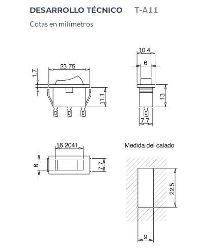 Tecla MICRO Interruptor On-Off 250v 2amp 2T 24x10.4mm cantidad