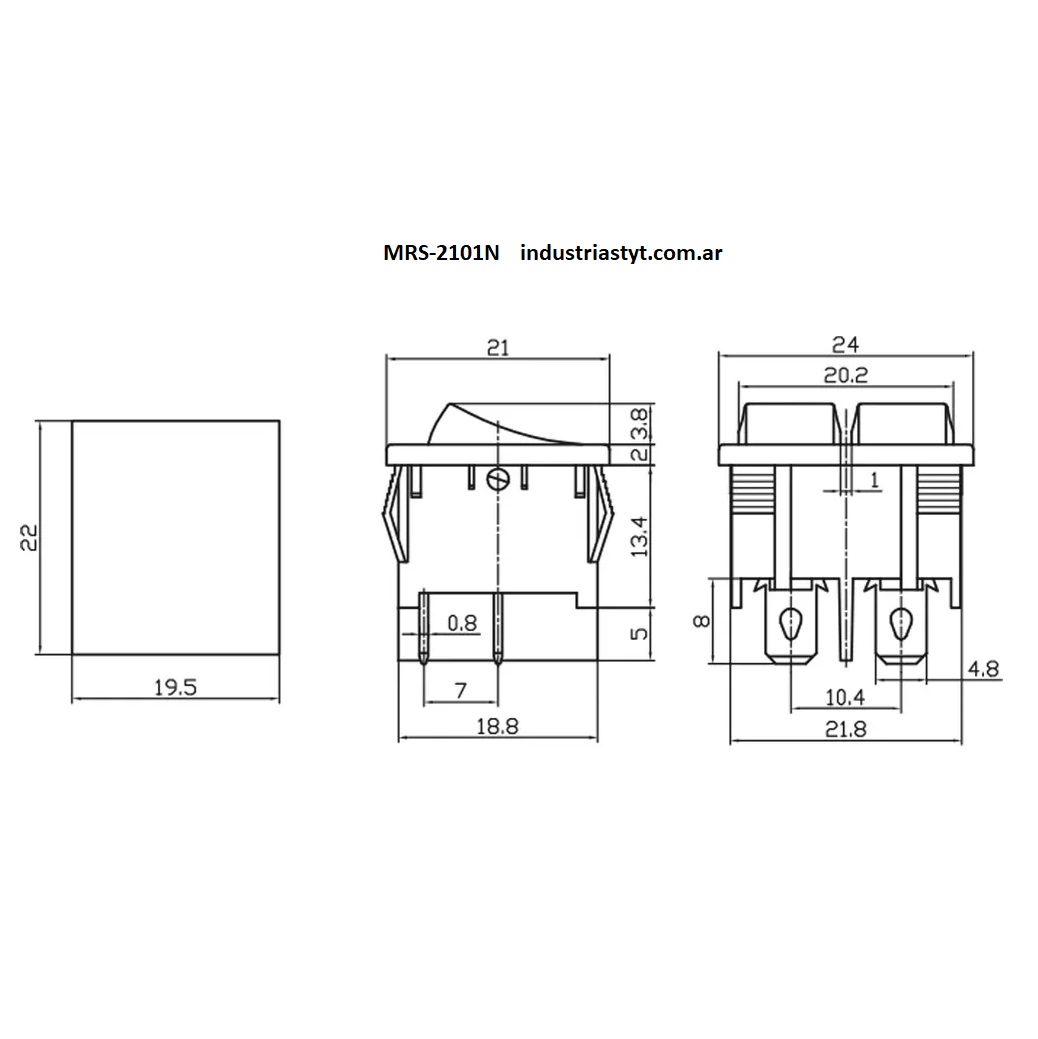 Tecla MINI 2TECLAS Interruptor On-Off 250v 3amp 4T 2polos 21x24mm Negra cantidad