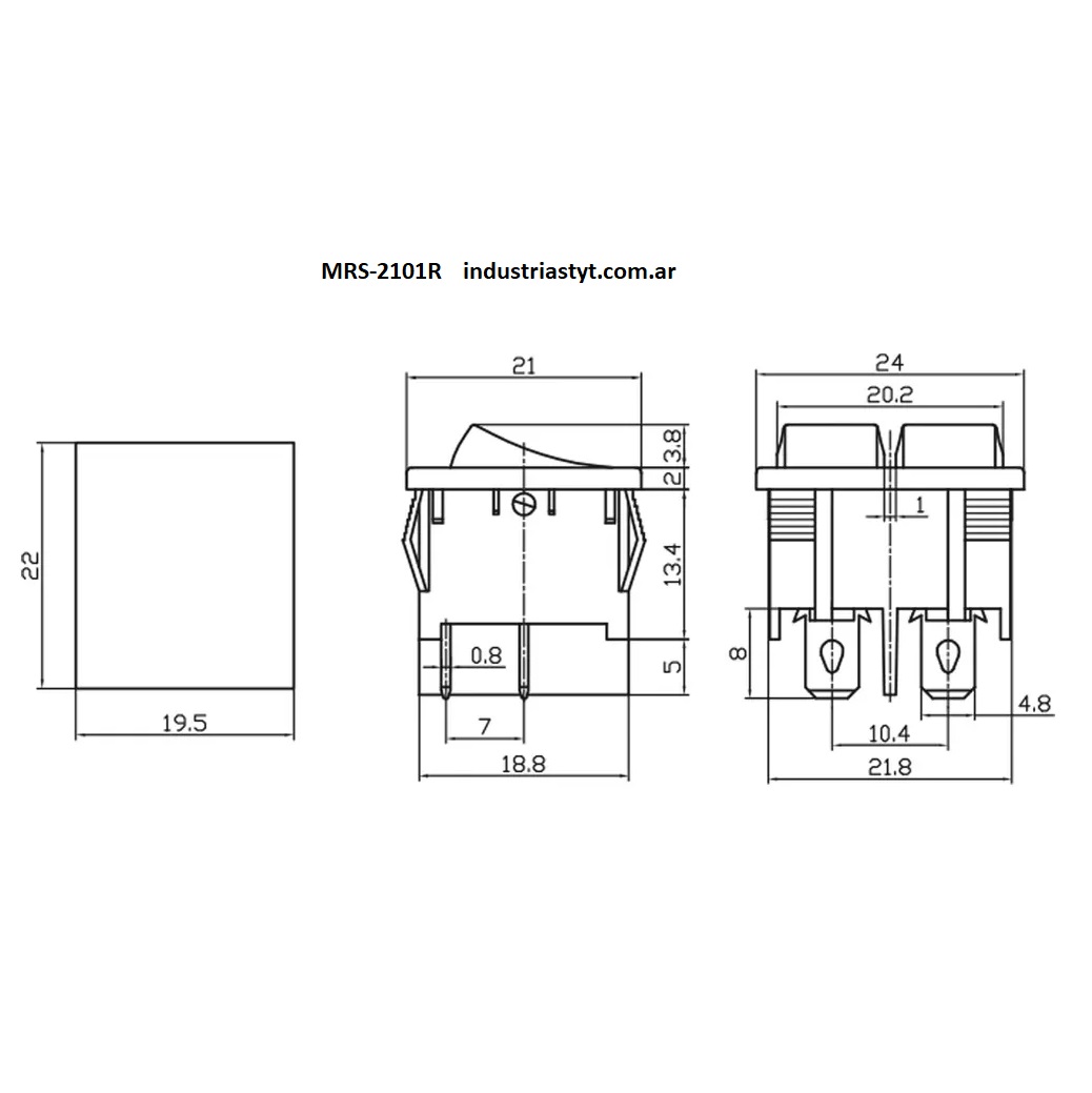 Tecla MINI 2TECLAS Interruptor On-Off 250v 3amp 4T 2polos 21x24mm Roja cantidad