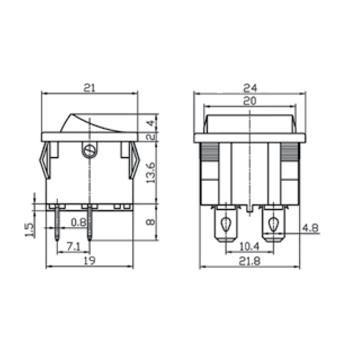 Tecla MINI DOBLE Interruptor On-Off 250v 3amp 4T 2polos 21x24mm Roja