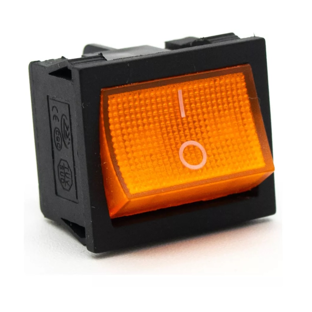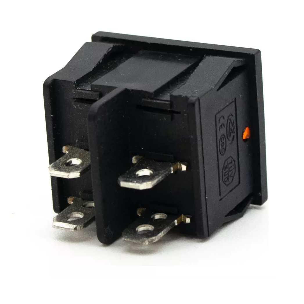 Tecla MINI DOBLE Interruptor On-Off c/Luz AMBAR 250v 6amp 4T 2polos 21x24.3mm cantidad