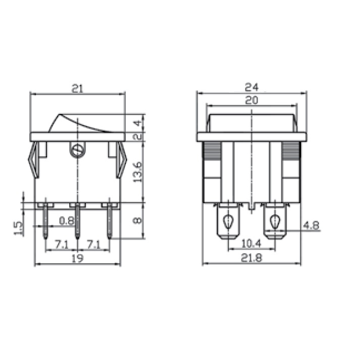 Tecla MINI DOBLE Inversora On-On 250v 3amp 6T 2polos 21x24mm Roja cantidad