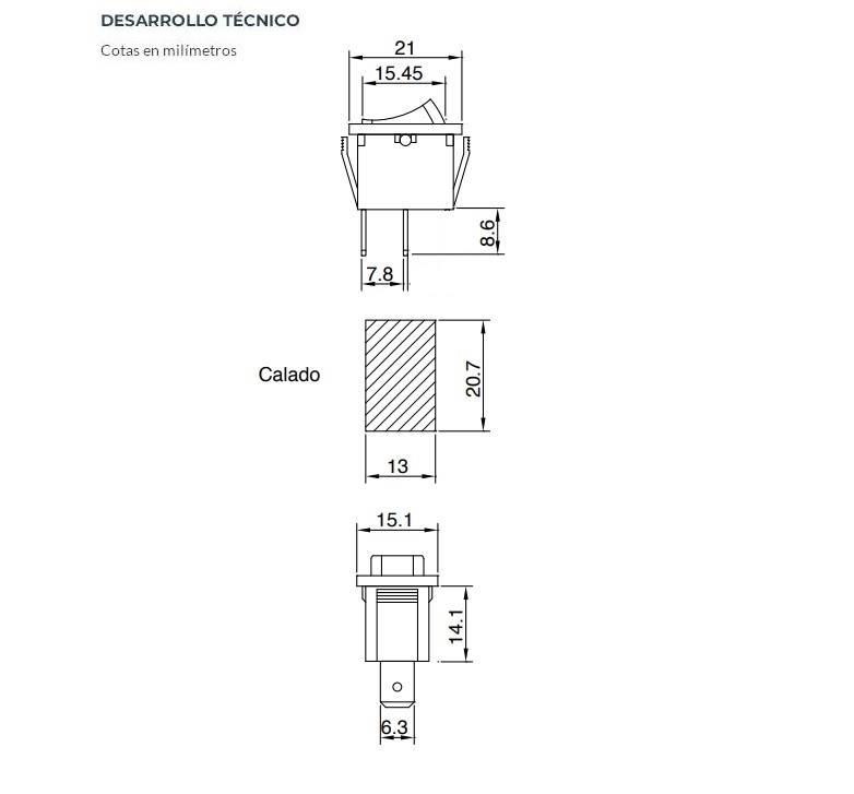 Tecla MINI Interruptor On-Off 250v 3amp 2T 1polo 21x15mm Roja cantidad