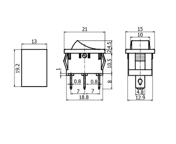 Tecla MINI Inversora On-On 250v 3amp 3T 1polo 21.4x15mm Roja cantidad
