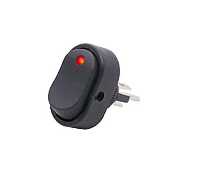 Tecla OVAL On-Off 12volt 20A 3T c/LED rojo 31x19mm cantidad