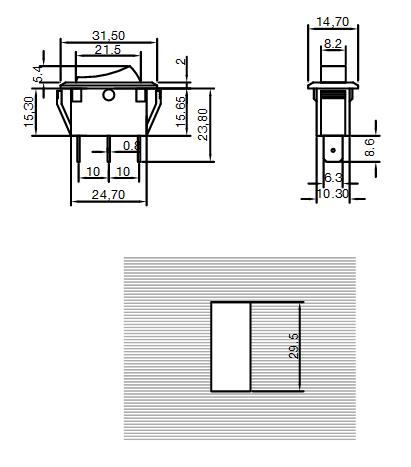 Tecla BORDEADORA Pulsador Off-(On) 250v 10amp 2T 31.4×14.7mm Blanca