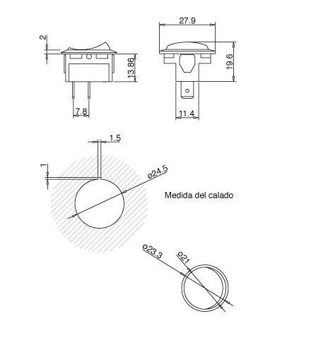 Tecla Redonda 27.9mm Grande (On)-Off 250v 10amp 2T Blanco Pulsador cantidad