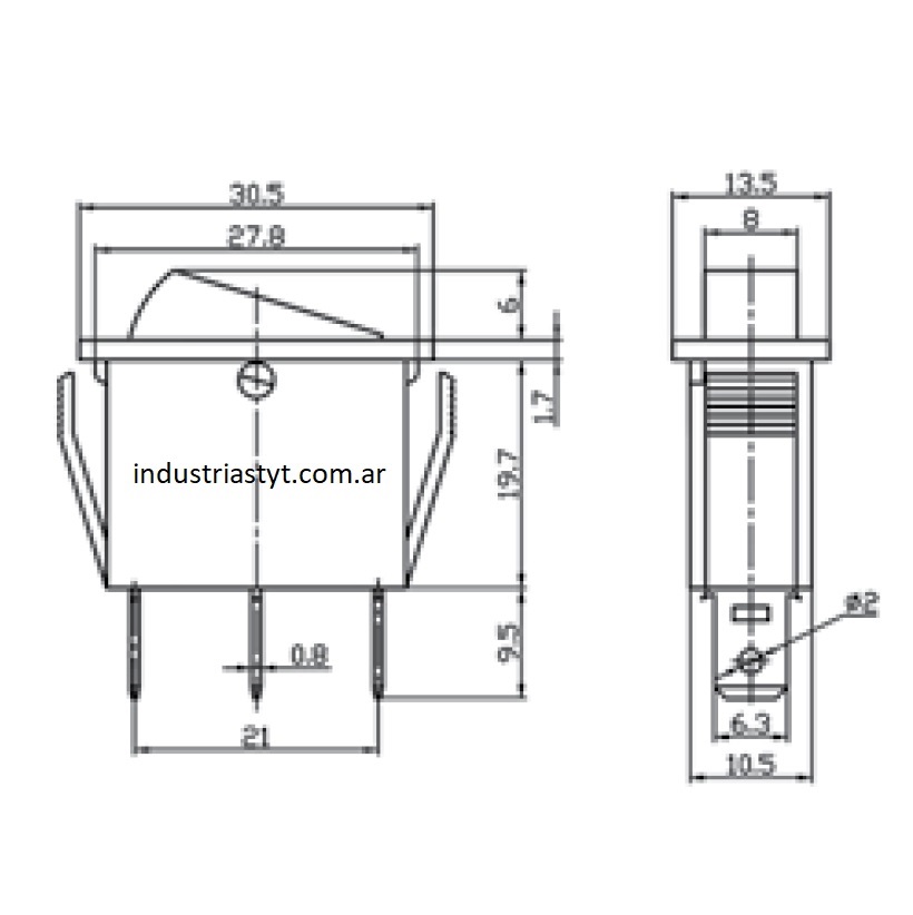 Tecla SIMPLE On-Off c/Luz AZUL 250v 15amp 3T 1polo 30.5×13.5mm