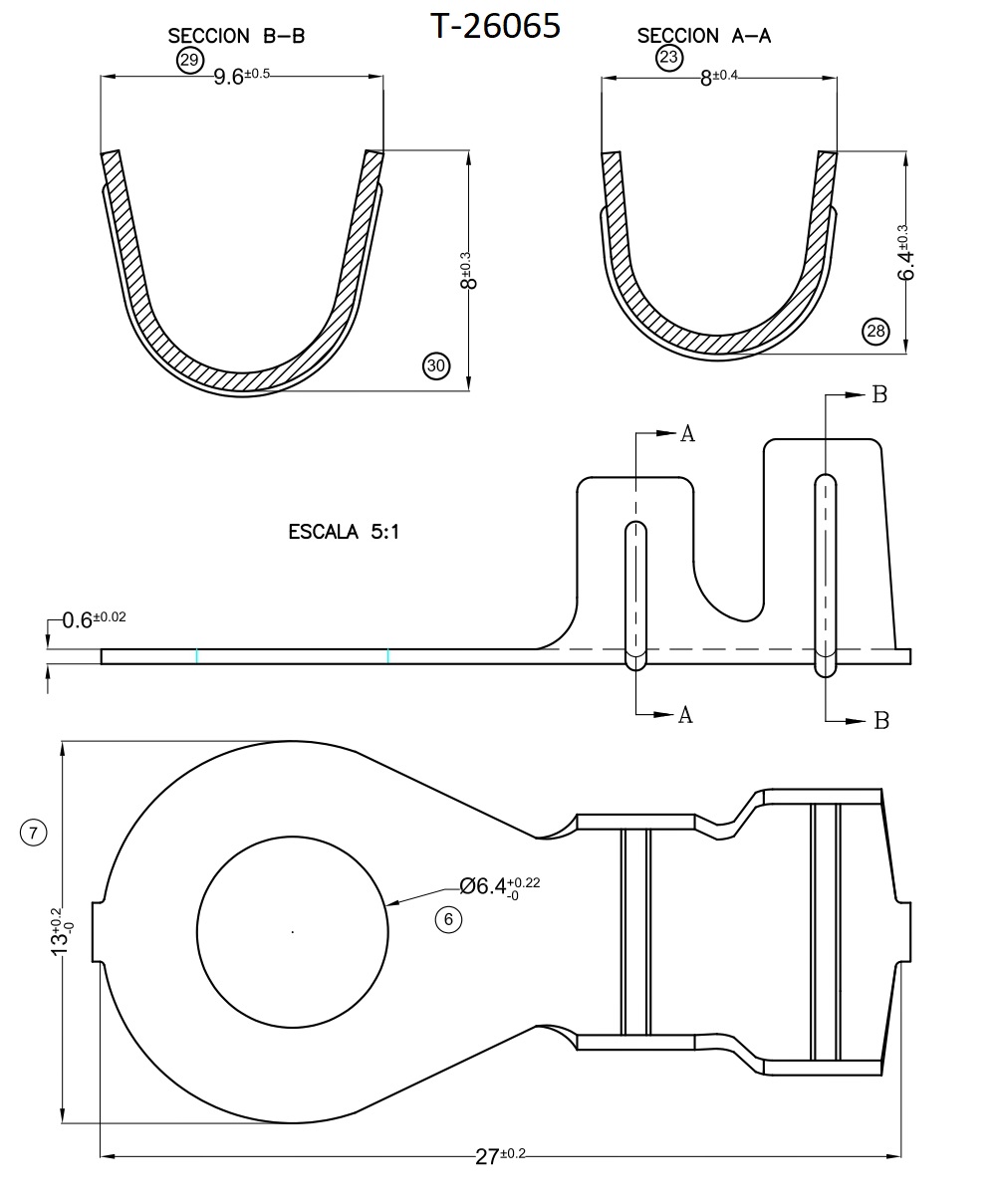 Terminal Ojal 6,50 mm 1a4mm cantidad