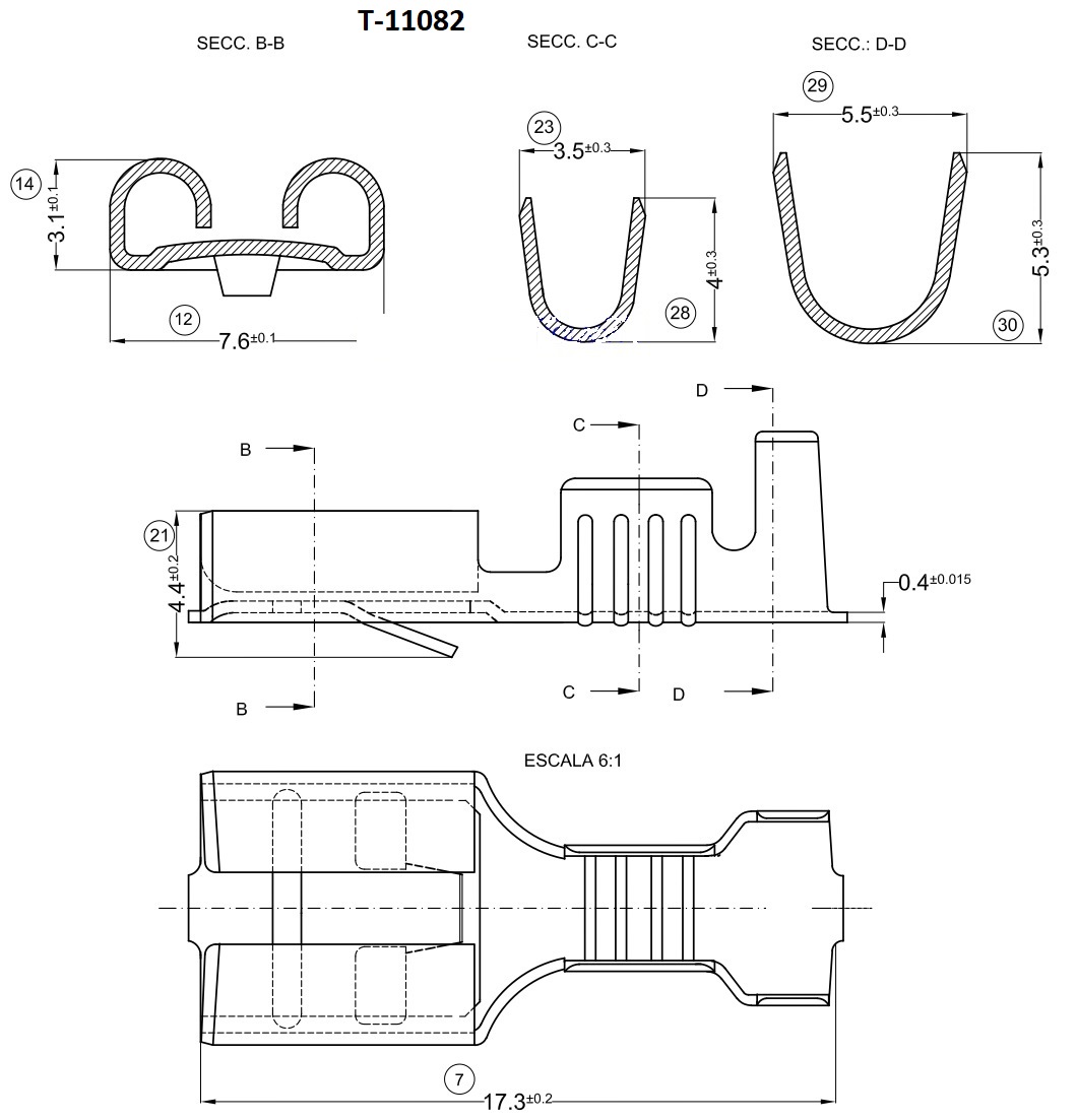 Terminal Pala Hembra 6,30mm c/traba 1a2,5mm