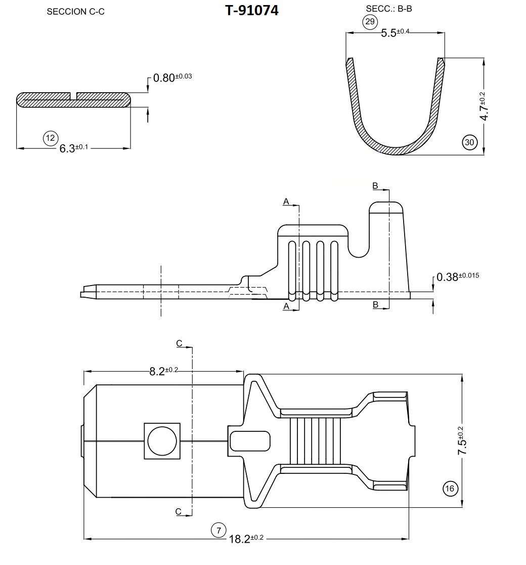 Terminal Pala Macho 6,30 mm Corto 1a2,5mm